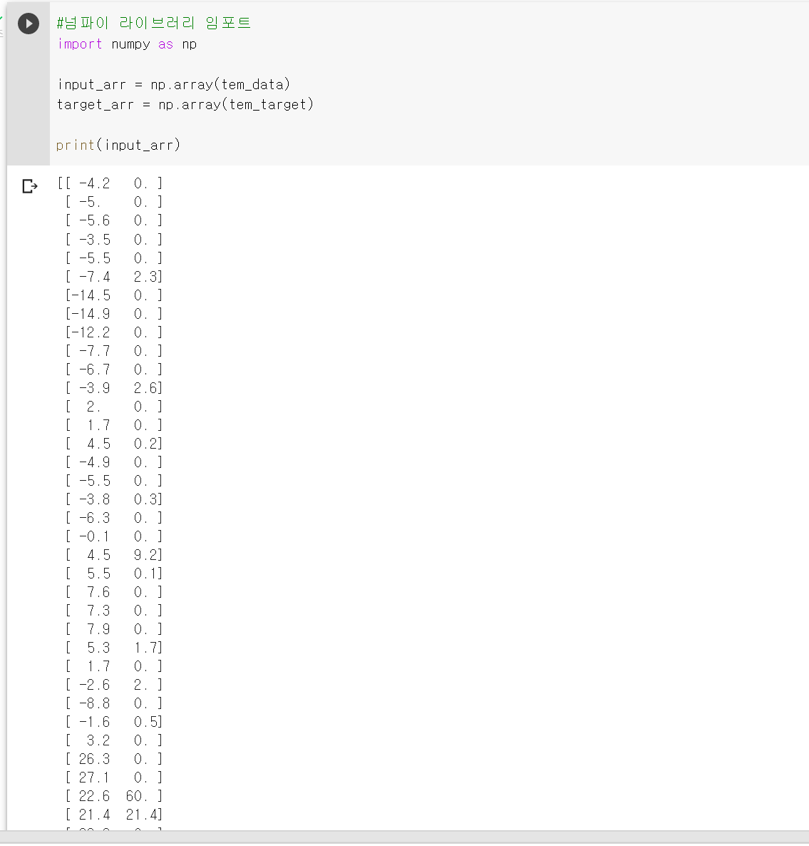 ๐ฆ ๊ธฐ์จ๊ณผ ๊ฐ์๋์ ๋ฐ์ดํฐ๋ฅผ ํฉ์ณ ํ๋์ ํ์ด์ฌ 2์ฐจ์ ๋ฆฌ์คํธ๋ก ์ค๋น