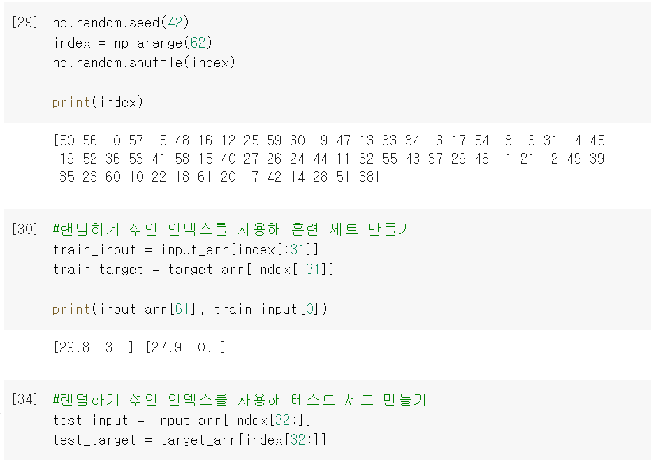 3. ์์ ์ธ๋ฑ์ค์ ๋ฆฌ์คํธ๋ฅผ ๊ฐ์ง๊ณ ํ๋ จ ์ธํธ์ ํ ์คํธ ์ธํธ ๊ตฌ๋ถ