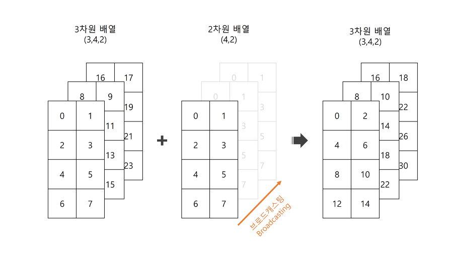 2. ์ฐจ์์ ์ง์ด ๋ง์ ๋ : ์ฐจ์์ ๋ํด ์ถ์ ๊ธธ์ด๊ฐ ๋์ผํ๋ฉด ๋ธ๋ก๋์บ์คํ ์ด ๊ฐ๋ฅํ๋ค.