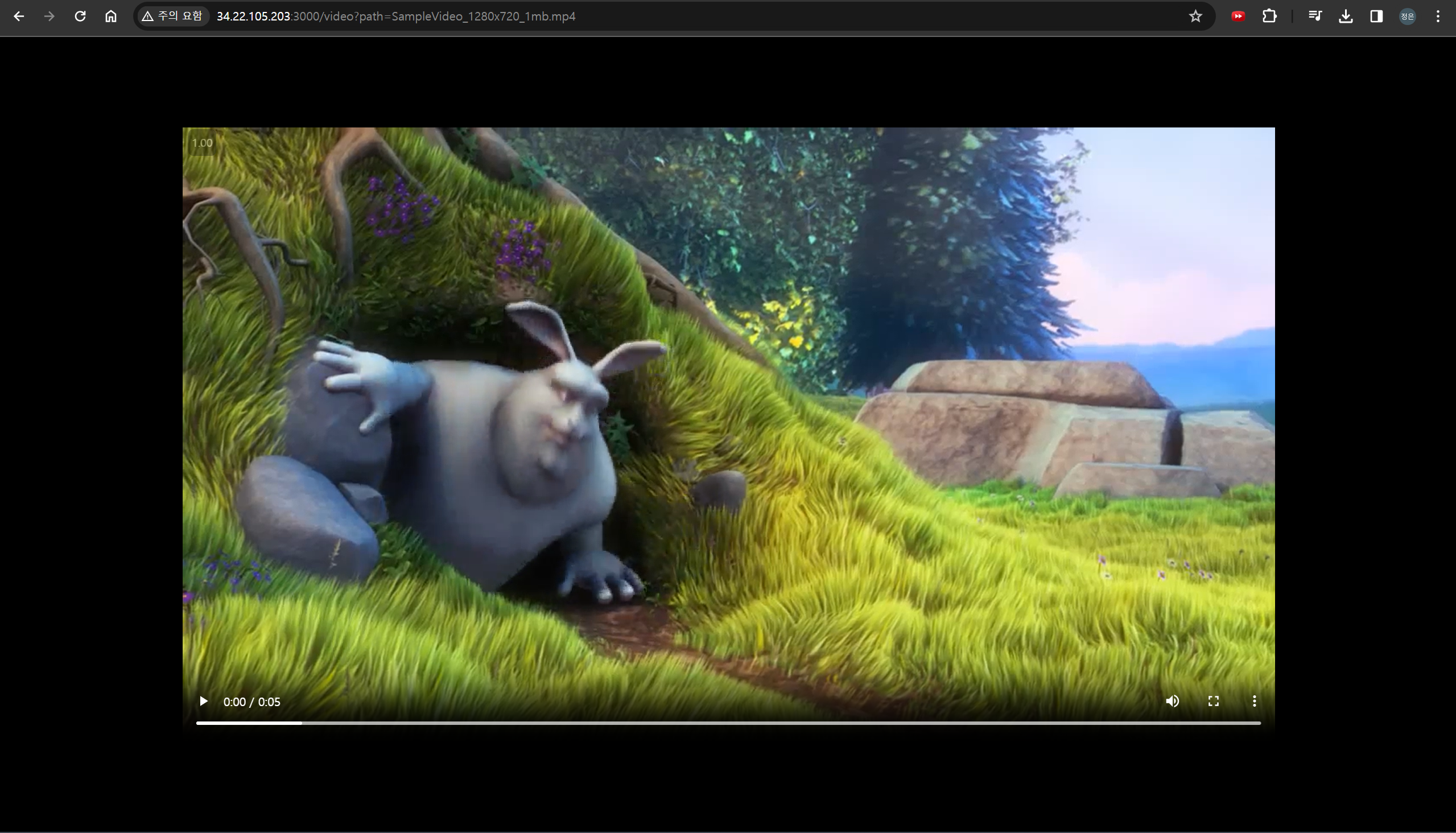 - 테스트 URL : http://{VM 주소}:3000/video?path=SampleVideo_1280x720_1mb.mp4