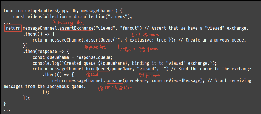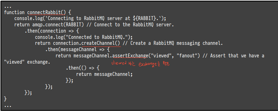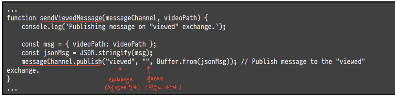 - viewed 큐 대신에 viewed exchange를 지정해 메시지를 publish한다. (첫 번째 인자가 exchange)