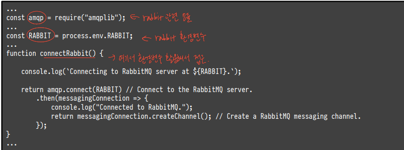 Histrory 마이크로서비스에서 Rabbit 환경변수를 활용해서 RabbitMQ에 접근한다.