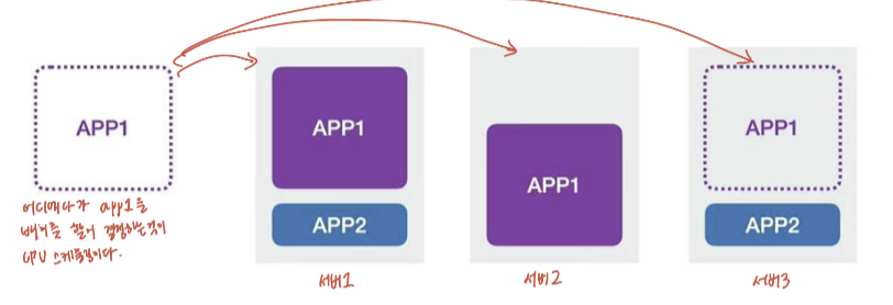 - 배포 관리 : CPU 스케줄링과 같이 어느 서버에 app을 배치를 할 지 스케줄링을 할 지 결정하는 역할도 한다.