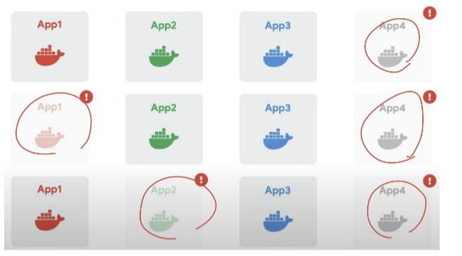 어떤 서비스에서 장애가 발생하였는지 신속하게 확인이 가능해야 되며, 로드가 한 쪽에 몰리는 것을 방지하기 위해서 모니터링 시스템으로 부하 분산과 같은 대처가 필요할 수 있다. → 하지만 도커 컨테이너로는 한계가 있다.