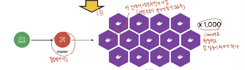 - 노드 스케일 : 컨테이너를 1,000배로 확장하여도 잘 작동이 되어야 한다,