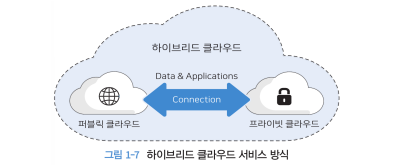 - 하이브리드 클라우드 (Hybrid Cloud) : 프라이빗 클라우드 (민감한 데이터) + 퍼블릭 클라우드 (워크로드 예측)