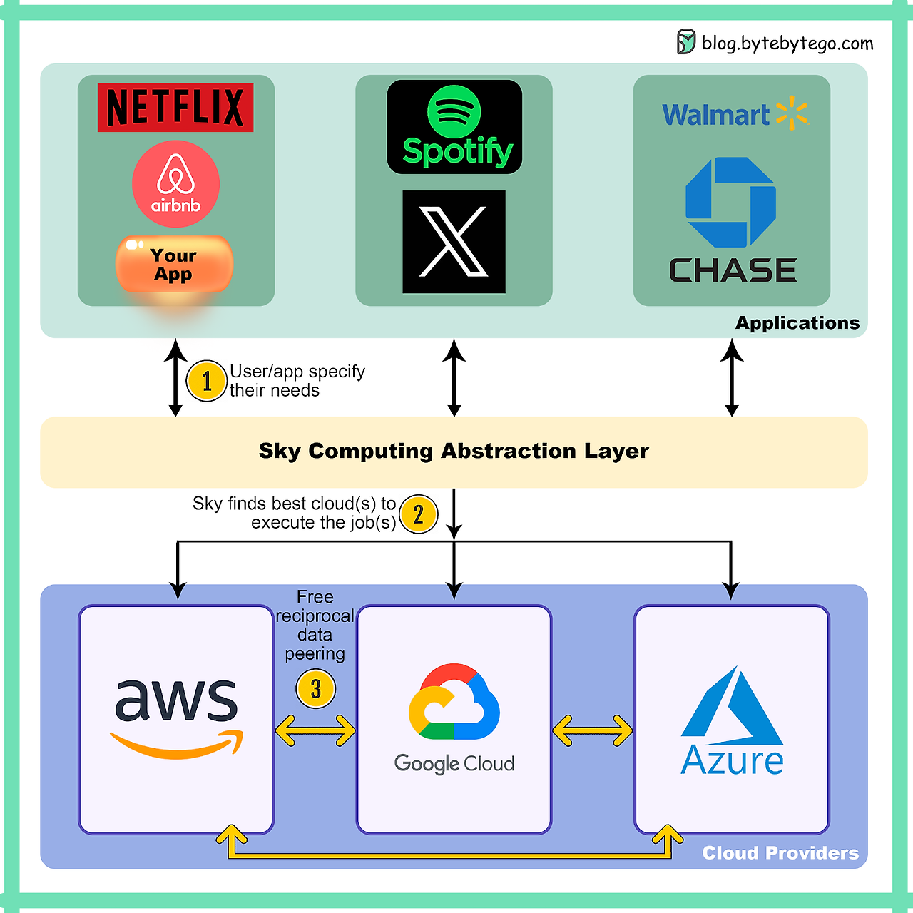 Multi-cloud 환경의 활용이 증가함에 따라 Vendor Lock-In 문제를 해소하기 위해 multi-cloud 적용이 가능해지고 있습니다. 2024년 기준 89%의 enterprise가 적용함으로써 cloud accounting, QoS, and fault tolerance 등 문제를 해결할 수 있습니다. 더 나아가 최근 vendor 간 완전한 상호 운용이 가능한 on-demand 기반의 sky computing이라는 패러다임까지 등장하였습니다.