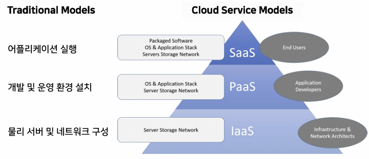 - Public Cloud: On-demand Computing 및 IT 자원에 대한 오픈 마켓으로 상용 서비스 (Amazon AWS, Microsoft Azure..)
