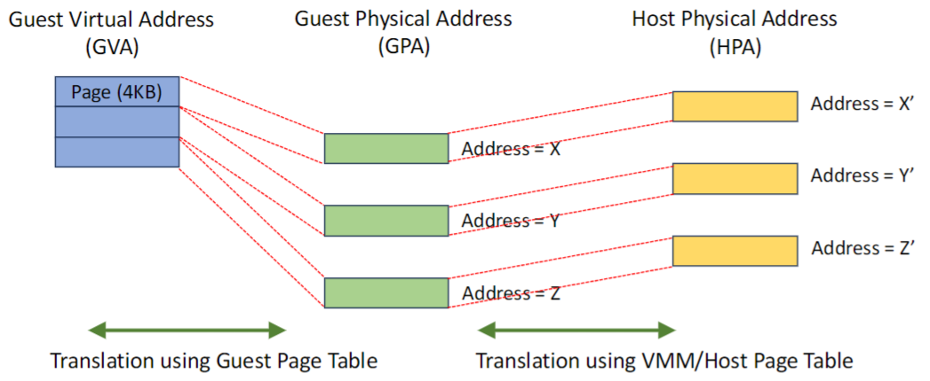 - MMU는 분리된 GVA → GPA, GPA → HPA 매핑을 참조한다.