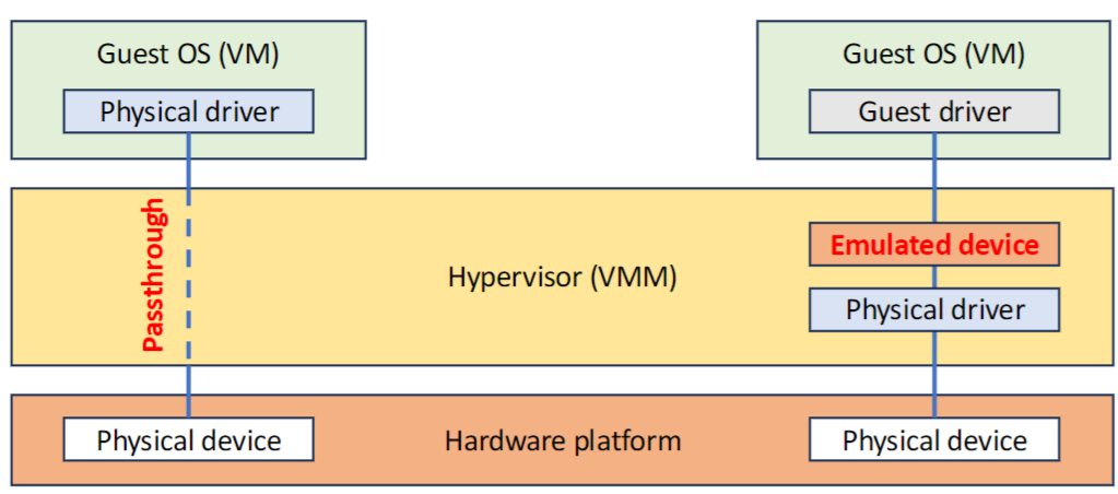 - Direct I/O or Device Passthrough