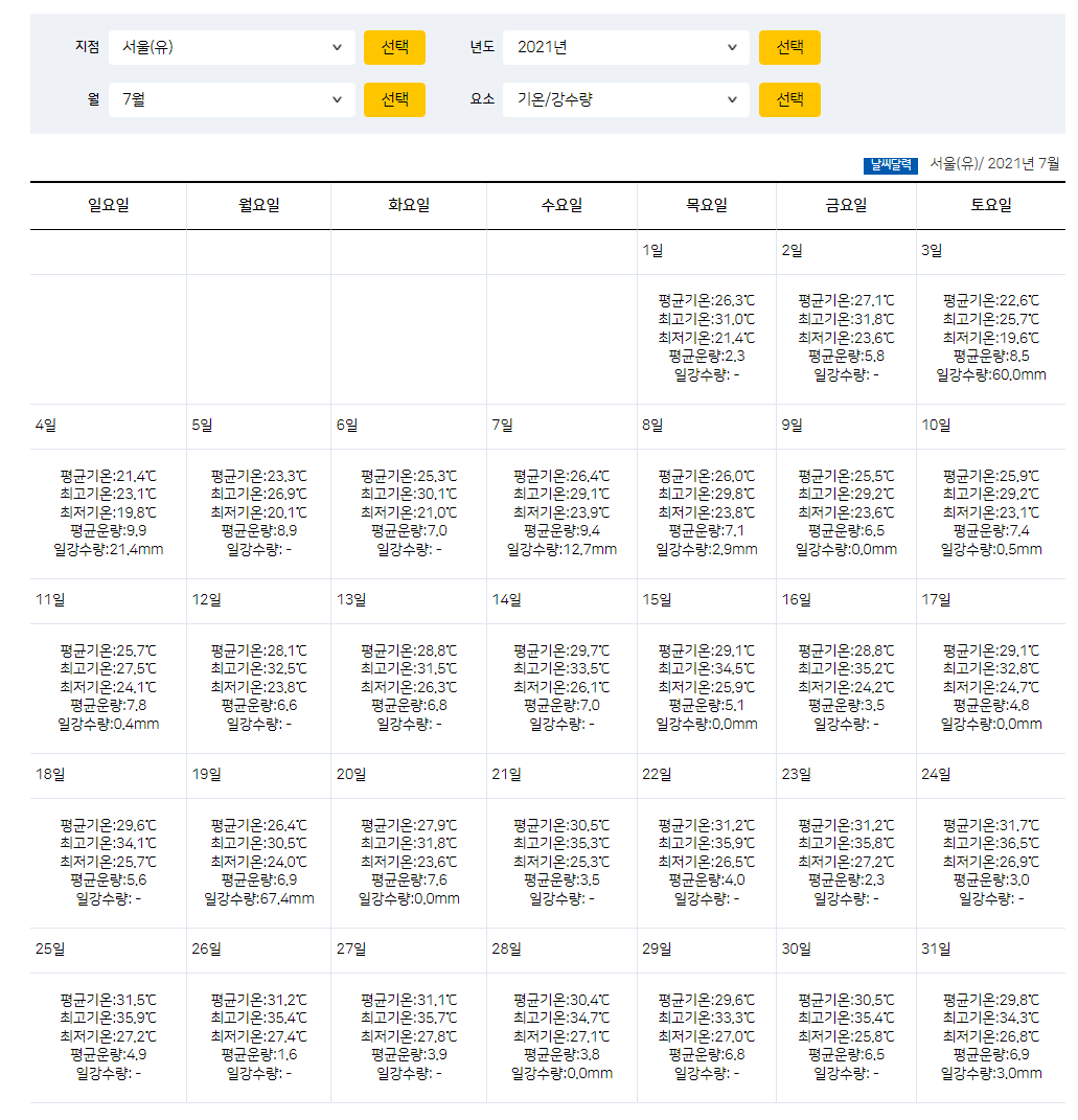 (๊ธฐ์ƒ ๋ฐ์ดํ„ฐ์˜ ์ถœ์ฒ˜๋Š” ๊ธฐ์ƒ์ฒญ ๋‚ ์”จ๋ˆ„๋ฆฌ(https://www.weather.go.kr/w/)์ด๋‹ค.)
