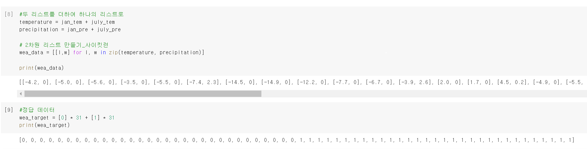 ๐Ÿ’ฆ ์‚ฌ์ดํ‚ท๋Ÿฐ ์‚ฌ์šฉ์„ ์œ„ํ•œ 2์ฐจ์› ๋ฆฌ์ŠคํŠธ ๋งŒ๋“ค๊ธฐ์™€ ์ •๋‹ต ๋ฐ์ดํ„ฐ ๋งŒ๋“ค๊ธฐ